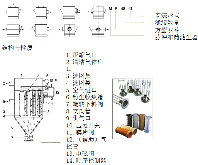 MF系列脈沖布筒濾塵器的詳細資料:積附在濾袋外壁的粉塵不斷增加。當阻力在限定(一般為80-120毫米水柱)的范圍內(nèi),就要清除積附在濾袋外壁的粉塵,清灰是由控制儀定期順序觸發(fā)各控制閥,開啟脈沖閥,使氣包內(nèi)的壓縮空氣由噴吹管孔噴出(一次風(fēng))通過文氏管誘導(dǎo)數(shù)倍于一次風(fēng)的周圍空氣(二次風(fēng))進入濾袋,使濾袋在一瞬間急劇膨脹并伴隨著氣流的反向作用.被抖落的粉塵落入灰門經(jīng)排灰閥排出機體。